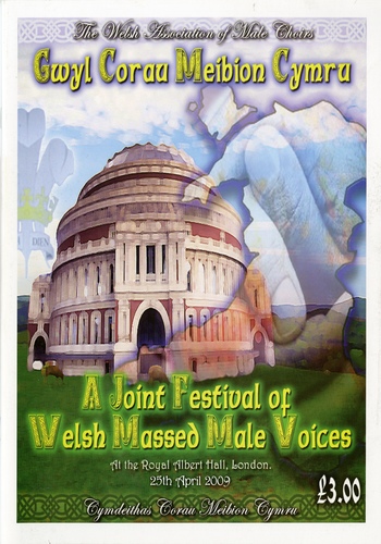 | Choirs | Beaufort Male Choir, Cor Meibion Bro Dysynni, Cor Meibion Caergybi, Cor Meibion Cwmman A'r Cylch, Cor Meibion Cymau, Cor Meibion Dinas Bangor, Cor Meibion Dyffryn Nantlle, Cor Meibion Llangollen, Cor Meibion Maelgwn, Cor Meibion Mynydd Mawr, Cor Meibion Trelawnydd, Flint Male Choir, Glynneath Male Choir, Maesteg Gleemen Male Choir, Mansfield Male Choir, Morriston RFC Male Choir, Orthopaedic Hospital Male Choir, Oxford Welsh Male Choir, Pembroke and District Male Choir, Porthcawl Male Choir, Queens Island Victoria Male Choir, Rhayader Male Choir, Talgarth Male Choir, Tenby Male Choir, Worrall Male Choir, Ysgol Gerdd Ceredigion |