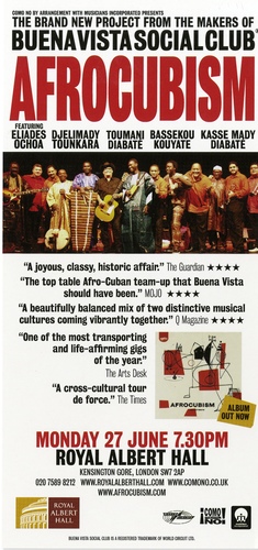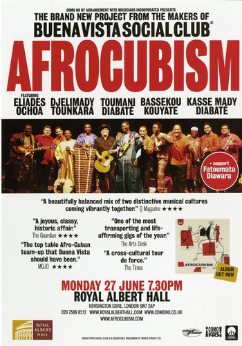Performance NotesComo No presents AfroCubism featuring Eliades Ochoa, Toumani Diabate, Bassekou Kouyate, Djelimady Tounkora, Kasse Mady Diabate.