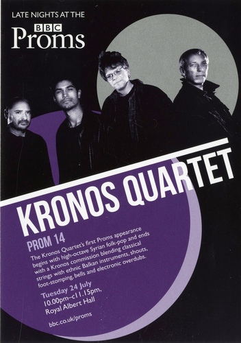 | Set List | 'I'll Prevent the Hunters from Hunting You (La Sidounak Sayyada)', O Souleyman, arr. J Garchik, 'String Quartet No.4', S Gubaidulina, 'String Quartet No.4 - Amazing Grace', B Johnston, 'The Golden Age of the Radiophonic Workshop - Fibre-Optic Flowers)', N Lizee, 'Tusen Tankar (A Thousand Thoughts)', trad., trans. Ljova, arr. Kronos Quartet, '