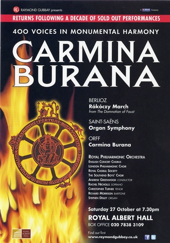 | Set List | 'Rákóczy March' from The Damnation of Faust, Berlioz, 'Organ Symphony', Saint-Saens INTERVAL 'Carmina Burana', Orff |