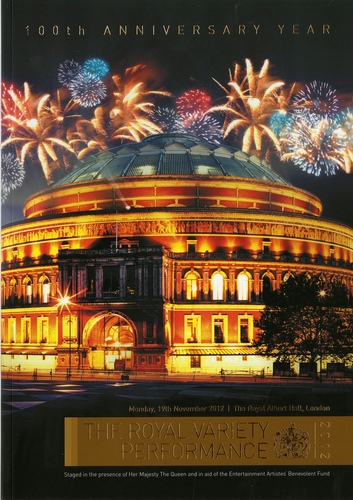 | Performance Notes | The Royal Variety Performance is presented annually in aid of the Entertainment Artistes' Benevolent Fund (the EABF), now often known as simply the 'Royal Variety Charity'; the first show being staged in 1912 when His Majesty King George V and Her Majesty Queen Mary attended the first 'Royal Performance'.
