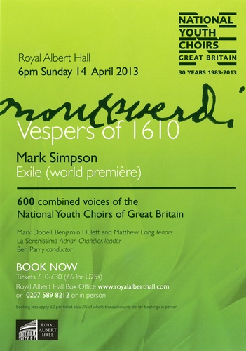 | Set List | 'Exile', Mark Simpson, 'Vespers of 1610', Monteverdi |