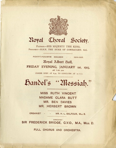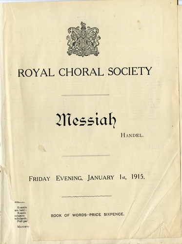 Royal Choral Society (Forty-Fourth Season 1914-1915) - Handel's 'Messiah'