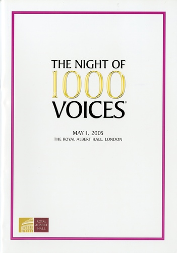| Secondary Performers | Len Cariou - speaker, The Night of 1000 Voices Dancers (Lucy Anderson, Michelle Lukes, Lorraine Stewart, Emma Woods), Sylvia Young Theatre School students |