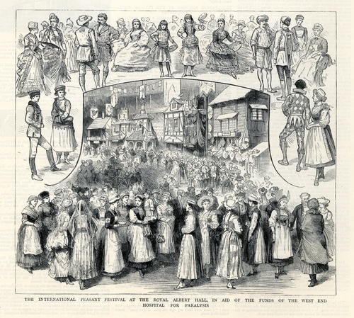 Advertised as an International Peasant Festival and Skating Musical and Dramatic Fete, in aid of the West End Hospital opened in 1878 (Illustrated London News, 5 January 1884)