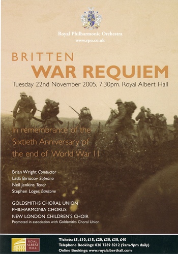 | Set List | 'War Equiem, Op.66', Benjamin Britten |