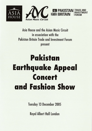 | Main Performers | Faakhir, Taufeeq Niyazi Khan, Ghulam Ali - vocals Stefan Kosciuszko (Chief Executive, Asia House), Her Excellency Dr Maleeha Lodhi - speakers |