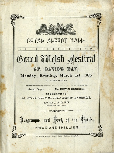 | Set List | Selection - 'Welsh Airs', arr. F Godfrey (Band of Her Majesty's Scots Guards), Part Song - 'March of the Men of Harlech' (William Carter's Choir), 'Adieu to Dear Cambria' (Madame Antoinette Sterling), Chrous - 'Britain's Lament', arr. John Thomas (William Carter's Choir), Recit. and Air - 'Deeper and Deeper Still', 'Waft Her, Angels', from Jephtha, Handel (Mr Sim Reeves), Air - 'Angels Ever Bright and Fair' from Theodora, Handel (Madame Valleria), 'The Cambrian War Song', Brinley Richards (Signor Foli), Part Song - 'All Through the Night', arr. John Thomas (William Carter's Choir), Welsh Songs - 'The Bells of Aberdovey', 'Y'Deryn Pur (The Dove)', arr. John Thomas (Madame Edith Wynne), 'Yes, Let me Like a Soldier Fall', from Maritana, Wallace (Mr Valentine Smith), Part Song - 'New Year's Eve', arr. John Thomas (William Carter's Choir), Duet, Pianoforte and Organ - 'Adante - Quintett', Reissiger (William Carter, Edwin Bending), Air - 'O Mio Fernando', from La Favorita, Donizetti (Miss Patti Winter), Part Song - 'The Fairies', John Thomas (William Carter's Choir), 'The Storm', Hullah (Madame Evans Warwick), Part Song - 'God Bless the Prince of Wales', H Brinley Richards (Mr Sim Reeves, Bending, William Carter's Choir, Scots Guards) INTERVAL Piccolo Solo - 'Breakmorn in the Forest', Demodi (Scots Guards), Welsh Part Song - 'Hob y Deri Dando', John Thomas (William Carter's Choir), 'The Lost Chord', Sullivan (Madame Antoinette Sterling, Bending), 'In Sheltered Vale', F D'Alquen (Signor Foli), Welsh Song - 'The Ash Grove', John Thomas (Madame Valleria), Part Song - 'Come to Battle', arr. John Thomas (William Carter's Choir), 'When Other Lifes', Ivan Macdy, 'Heaven and Earth', Pinsuti (Madame Edith Wynne), Part Song - 'Cambria', M. Deigh (William Carter's Choir), 'True Hearts', W S Wadham (Miss Patti Winter), Welsh Song - 'The Missing Boat' (Madame Evans Warwick), Chroal March - 'The Black Prince', Chruchill Sibley (William Carter's Choir, Scots Guards, Bending) |