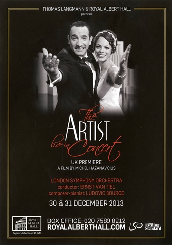 | Performance Notes | Two years after it charmed the world with its nostalgic look at the golden days of the Hollywood silent film, The Artist now comes to the Royal Albert Hall on Monday 30 and Tuesday 31 December 2013. This multi-award winning film is dramatically brought to life on stage with the London Symphony Orchestra, conducted by Ernst Van Tiel, playing the soundtrack simultaneously with a highdefinition screening of the film for a exclusive UK premiere.