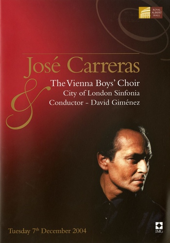 | Set List | 'Judex' from Mors et Vita, Gounod (Orchestra), 'Adeste Fideles', Wade (Jose Carreras, 'Vienna Boys' Choir), 'Tu scendi dalle stelle', Liguori (Jose Carreras), 'Ave Maria', Arcadelt (Vienna Boys' Choir), 'Mille Cherubini in Coro', F Schubert (Jose Carreras), 'Panis Angelicus', C Franck (Jose Carreras, 'Vienna Boys' Choir), 'Intermezzo (Goyescas)', Granados (Orchestra), 'La Virgen Lava Panales', trad. (Jose Carreras), 'Cancion Hungara (Alma de Dios)', Serrano (Jose Carreras), INTERVAL 'Joy to the World', Mason (Vienna Boys' Choir), 'Es Wird Scho Glei Dumpa', trad. (Vienna Boys' Choir), 'Il est ne le Divin Enfant', trad. (Vienna Boys' Choir), 'Leise Rieselt der Schnee', Ebel (Vienna Boys' Choir), 'The First Noel', trad. (Vienna Boys' Choir), 'Pueri Concinite', JR von Herbeck (Vienna Boys' 'Choir), 'Firenze Sogna', Cesarini (Jose Carreras), ''Na Sera'e Maggio', Cioffi (Jose Carreras), 'Silenzio Cantatore', Lama (Jose Carreras), 'Che T'aggia Di!', E Nardella (Jose Carreras), 'Overture' from Die Fledermaus, J Strauss (Orchestra), 'I'll Be Home for Christmas', Gannon, Ram, Kent (Jose Carreras), 'White Christmas', Berlin (Jose Carreras, Vienna Boys' Choir) |