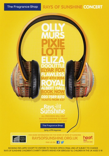| Set List | 'Nasty' (Pixie Lott), 'Boys and Girls' (Pixie Lott), 'Cry Me Out' (Pixie Lott), 'All About Tonight' (Pixie Lott), Welcome (Toby Anstis), 'Carry You' (Union J), 'Beautiful Life' (Union J), 'Just Be Good to Green' (Professor Green), 'Read All About It' (Professor Green), 'As Long As You Love Me' (Aston Merrygold), 'Locked Out of Heaven' (Aston Merrygold), 'Bring Me Sunshine' (Abbey Road Choir) INTERVAL Welcome Back (Toby Anstis), 'Pack Up' (Eliza Doolittle), 'Walking on Water' (Eliza Doolittle), Challenge Message (Toby Anstis), 'Do It All Over Again' (Elyar Fox), 'Smile' (Elyar Fox), 'A Billion Girls' (Elyar Fox), Raffle Draw (Toby Anstis), 'Let's Get Excited' (Alesha Dixon), 'Scandalous' (Alesha Dixon), 'Boy Does Nothing' (Alesha Dixon), Thank You (Toby Anstis), 'Dance with me Tonight' (Olly Murs), 'Oh My Goodness' (Olly Murs), 'Please Don't Let Me Go' (Olly Murs), 'Dear Darlin' (Olly Murs), 'Right Place Right Time' (Olly Murs), 'Heart Skips a Beat' (Olly Murs), 'Troublemaker' (Olly Murs) |