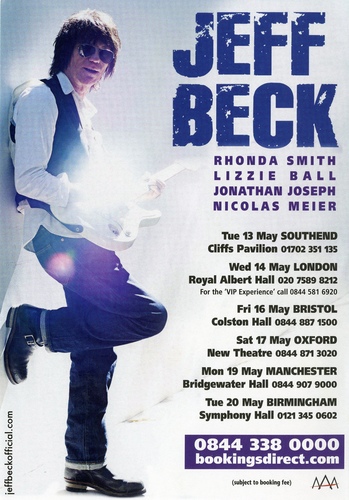 Jeff Beck: 'Loaded', 'Nine', 'Little Wing', The J Hendrix Experience, 'You Know You Know', Mahavishnu Orchestra, 'Hammerhead', 'Angel (Footsteps)', 'Stratus', B Cobham, 'Yemin', N Meier, 'Where Were You', 'Egyptian', 'Goodbye Pork Pie Hat', C Mingus, 'Brush with the Blues', 'You Never Know', 'Danny Boy', E Schumann-Heink, 'Why Give It Away' (with Sophie Delila), 'Rollin' and Tumblin', H, Willie Newbern (with Sophie Delila), 'Choral', 'Big Block', 'Cause We've Ended as Lovers', Syreeta (Jeff Beck) ENCORE 'Declan', D Lunny (Jeff Beck), 'A Day in the Life', The Beatles (Jeff Beck) SECOND ENCORE 'You'll Never Walk Alone', Christine Johnson (Jeff Beck) |