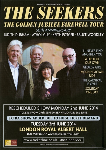 | Performance Notes | Following a successful sell out run in their native Australia, the pop quartet comprising Judith Durham, Athol Guy, Keith Potger and Bruce Woodley have reunited one last time for their 50th Anniversary Farewell Golden Jubilee Tour.