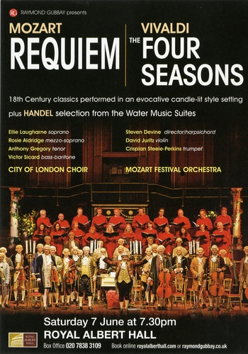| Set List | 'Requiem', Mozart, 'The Four Season', Handel |