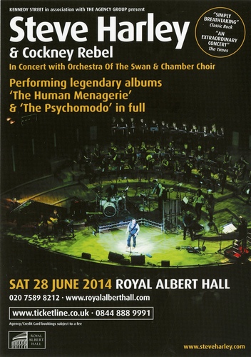 | Performance Notes | Steve Harley, accompanied by Cockney Rebel alongside the Orchestra of the Swan and their Chamber Choir, will perform seminal albums The Human Menagerie and The Psychomodo in their entirety.
