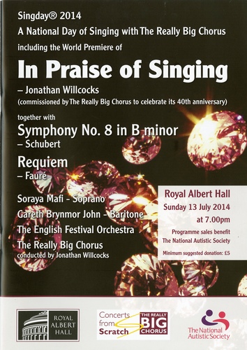 'In Praise of Singing' by Jonathan Willcocks was commissioned by The Really Big Chorus to celebrate its 40th anniversary. |