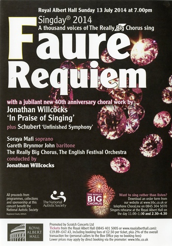 | Performance Notes | 1,000-plus singers from The Really Big Chorus perform Fauré's Requiem - a perennial favourite of the choral repertoire - including the beautiful Pie Jesu, a tune known and loved all around the world.