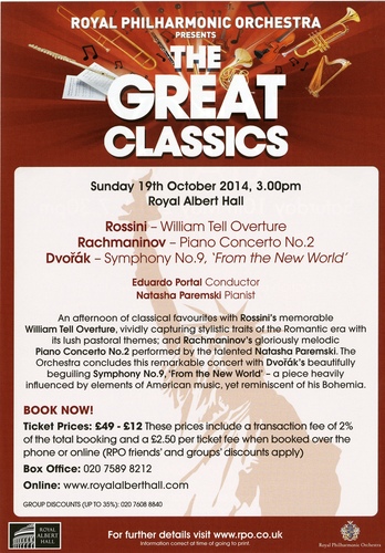 | Set List | 'Overture' from William Tell, Rossini, 'Piano Concerto No.2', Rachmaninoff INTERVAL 'Symphony No.9, 'From the New World', Dvorak |