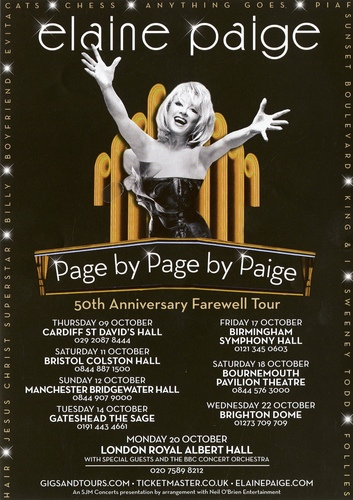 | Performance Notes | "The First Lady of Musical Theatre" returns to the Royal Albert Hall for a very special show with special guests and the BBC Concert Orchestra as part of her farewell tour.