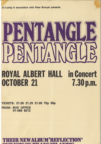 | Orchestra or Band | The Pentangle (Jacqui McShee - vocal, Bert Jansch - guitar, vocal, Terry Cox - drums, Danny Thompson - double bass, John Redbourn - guitar, vocal) |