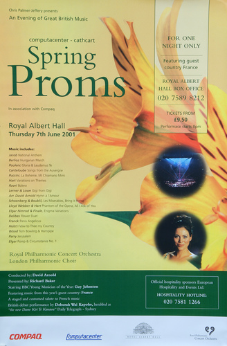 | Set List | 'God Save the Queen' (The National Anthem), arr. GJacob, 'Hungarian March', Berlioz, 'Gloria and Laudamus Te', Poulenc, 'Songs of the Auvergne', Canteloube, 'Mi Chiamano Mimi' from La Boheme, Puccini, 'Variations on Themes from Carmen', Paul Hart, 'Bolero', Ravel INTERVAL 'Gigi' from Gigi, Lerner, Loewe, 'Hymne a L'Amour', Monnot-Piaf, arr. David Arnold, 'Bring Him Home' from Les Miserables, Schoenberg, Boublil, 'All I Ask of You' from Phantom of the Opera, Lloyd Webber, Hart, 'Nimrod (Enigma Variations)', Elgar, 'Flower Duet' from Lakme, Delibes, 'Panis Angelicus', Franck, 'I Vow To Thee My Country', Holst, 'Tom Bowling and Hornpipe', Henry Wood, 'Jerusalem', Parry, 'Pomp and Circumstance March No.1', Elgar |