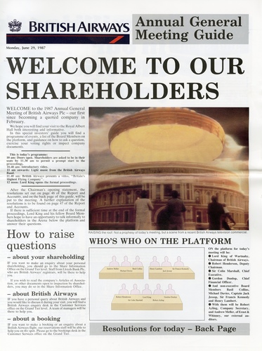 | Main Performers | Lord King (Chairman, BA), Robert Henderson, Sir Colin Marshall, Gordon Dunlop, Basil Collins, Michael Davies, Captain Jack Jessop, Sir Francis Kennedy, Henry Lambert, Robert Ayling (Secretary, BA), Andrew Meller - speakers |