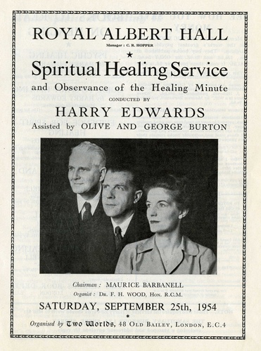 | Main Performers | Maurice Barbanell (Chairman), Harry Edwards, Olive Burton, George Burton - speakers. Vera Florence - vocal, Dr F H Wood - organ |