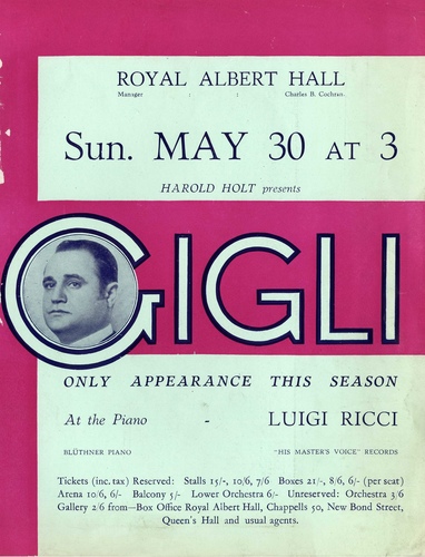 | Main Performers | Beniamino Gigli - vocal, Betty Humby - piano |