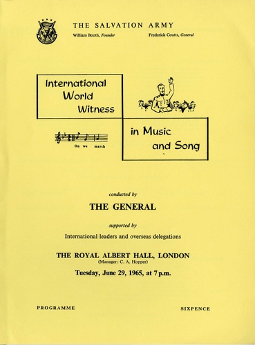 | Main Performers | General Frederick Coutts, Mrs Lt.-Colonel J Benjamin, Mrs General Orsborn, The Australian Timbrels, Captain Ian Cutmore, Major Alida Bosshardt, Colonel Leslie Rusher, Lt.-Colonel Jean Pierre Sechaud, Major William Leslie |