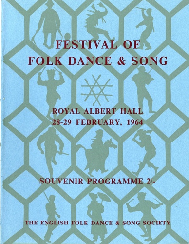 | Set List | Overture (Arena Band, Nan Fleming-Williams), Festival Dancers (McBain's Band, Arena Band), The Visitors, Morris Dancers from Manley (Leslie Haworth, Arthur Webb, Caleb Walker), 'Bonny Breast Knot' (Devon) (Royal Ballet School, June Wilson, Patrick Shuldham-Shaw, Ranchers), 'Johnny's So Long At The Fair' (Wheatley) (Royal Ballet School, June Wilson, Patrick Shuldham-Shaw, Ranchers), 'Once I Loved A Maiden Fair' (Royal Ballet School, June Wilson, Patrick Shuldham-Shaw, Ranchers), 'Walpole Cottage' (Royal Ballet School, June Wilson, Patrick Shuldham-Shaw, Ranchers), Country Dances - The Quaker's Wife (Northumberland) (Nan Fleming-Williams), Quadrille (Goathland, Yorkshire) (Nan Fleming-Williams), Sword Dancers from Loftus (Arthur Marshall), Slangpolska Fran Narke (Skansen Folk Dance Team, Stockholm), Vava Vadmal (Skansen Folk Dance Team, Stockholm), Vastgotapolska (Skansen Folk Dance Team, Stockholm), Cyril Tawney, 'The Camden Town Sound' (Pat Tracey, Hamish Fraser, June Wilson, Bob Parker, Patrick Shuldam-Shaw, Jack Hamilton, Derek Goom, David Bing, Reg Ezekiel, Colin Sheen, Adrian Stocks, John Major, Bill Ashton, Malcolm Strutt, Keith Brown, Pat Evans, Foggy Lyttle, Dick Hammett, Keith Roberts, John Easey, David Fleming-Williams), Durham Reel (Schools), Brighton Camp (Schools), Overture - 'Folk Tunes', from The Beggars' Opera (Arena Band, Nan Fleming-Williams), Country Dances - Double Quadrille (Dancers from the Provinces), Waltz Country Dance (Dancers from the Provinces), Double Set Back (Headington Quarry Dancers (Oxfordshire)), Trunkles (Headington Quarry Dancers (Oxfordshire)), Rodney (Headington Quarry Dancers (Oxfordshire)), Rigs O'Marlow (Headington Quarry Dancers (Oxfordshire)), 'The Blue Eyed Stranger' (Headington Quarry Dancers (Oxfordshire), John Graham, Kenneth Loveless, David Rendell, Harry Fell, Arthur Kimber), Country Dances by Teenagers - Tom Pate (Ranchers, Brian Willcocks), Cumberland Square Dance (Ranchers, Brian Willcocks), Gay Gordons (Ranchers, Brian Willcocks), Hullichan Roundabout (Ranchers, Brian Willcocks), Ted Kavanagh Irish Dancers (Richard Griffin, Michael Johnson), Dances from the Isle of Man - Hunting The Wren (McBain's Band), Peter O'Tavy (McBain's Band), Mona's Delight (McBain's Band), Jackie Toaduff (Nan Fleming-Williams, Jackie Toaduff), 'Vira Antigo' (Coral Do Ribatejo, Santarem, Portugal), 'Bailarico Da Leziria' (Coral Do Ribatejo, Santarem, Portugal), 'Fadinho Da Borda D'Agua' (Coral Do Ribatejo, Santarem, Portugal), 'Modas De Dois Passos' (1st and 2nd variante) (Coral Do Ribatejo, Santarem, Portugal), 'Fandango' (Coral Do Ribatejo, Santarem, Portugal), 'Vira Do Vinho' (Coral Do Ribatejo, Santarem, Portugal), 'Corridinho De Santarem' (Coral Do Ribatejo, Santarem, Portugal), Finale - Circassian Circle, 'God Save the Queen' (The National Anthem) |