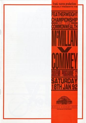 | Set List | Featherweight - Colin McMillan v Oblitey Commey (Africa), Heavyweight - Derek 'Sweet D' Williams (London) v Tim Anderson (USA), Featherweight - Alan Mckay (Willesden) v Peter Buckley (Birmingham), Middleweight - Valentine Golding (Croydon) v Quinton Payntor (Manchester) Lightweight - Ian Honeywood (Bexley) v Steve Pollard (Hull), Welterweight - Kevin 'The Look' Lueshing (Crystal Palace) v Mark Sverikios (Swansea, Wales), Light Welterweight - Paul 'Scrap Iron' Ryan (Hackney) v Alex Sterling (Finsbury Park), Cruiserwweight - Wayne Llewellyn (Deptford) v Chris Coughlan (Swansea, Wales) |