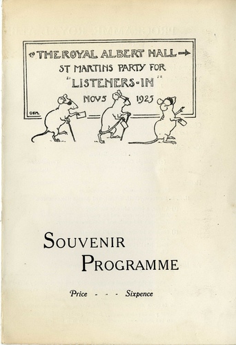 | Main Performers | Reverend H R L 'Dick' Sheppard, Roland Jackson, Frederick Grisewood, C H Ritchie, Arnold Goldsbrough - performers, Cedric Sharpe - cello |