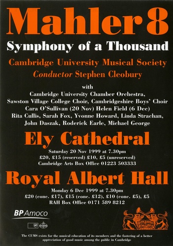| Orchestra or Band | Cambridge University Musical Society Orchestra |