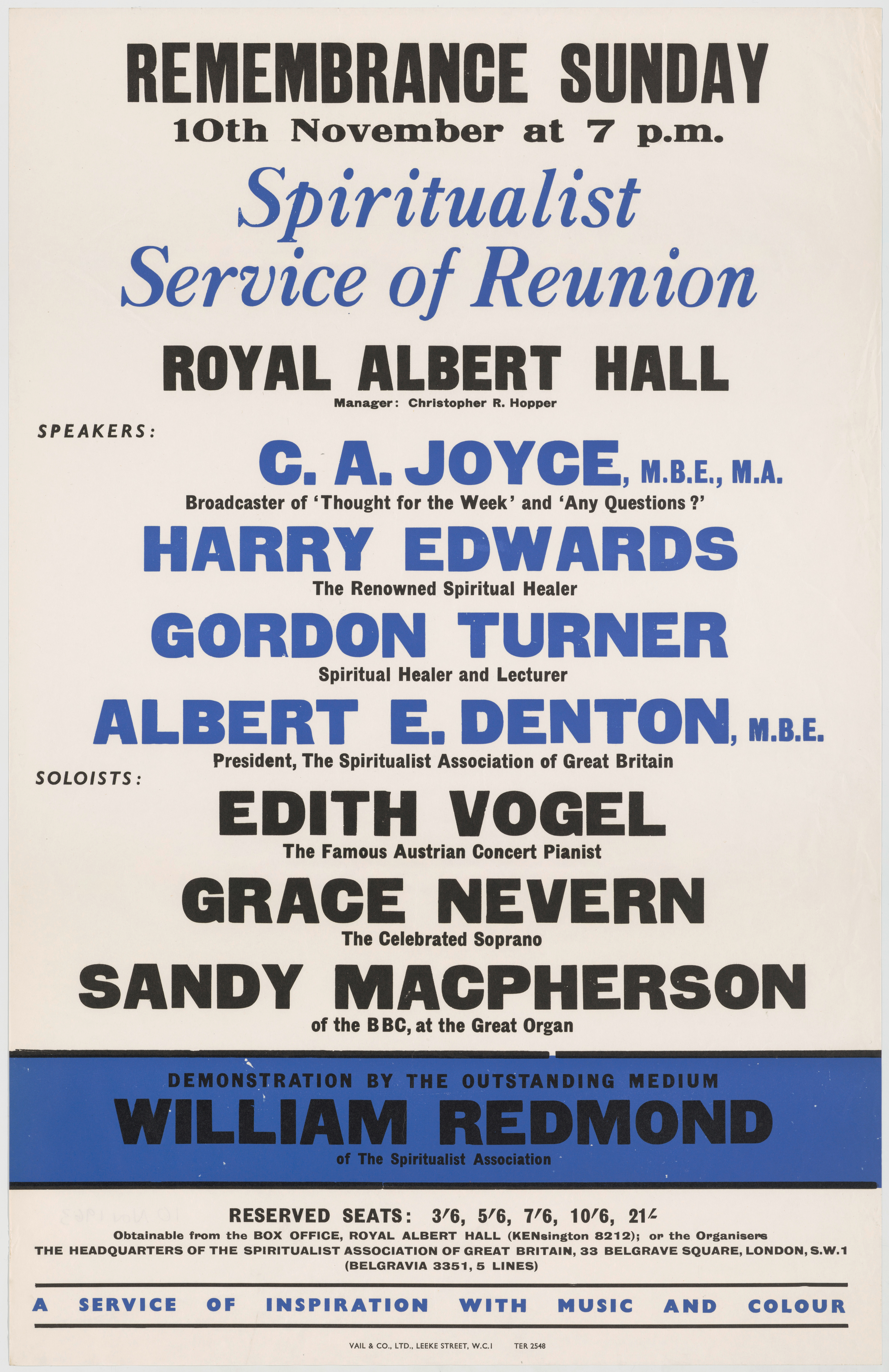Main PerformersAlbert E Denton (President of the Spiritualist Association of Great Britain),