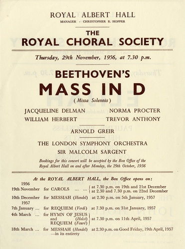| Main Performers | Jacqueline Delman, Norma Procter, William Herbert, Trevor Anthony - vocals, Arnold Greir - organ |