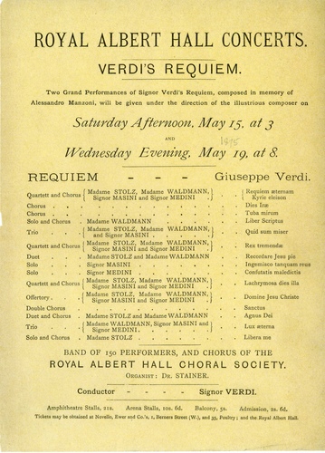 | Conductors | Giuseppi Verdi, Mr Jospeh Barnby (choir) |