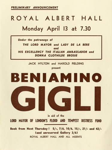 | Main Performers | Beniamino Gigli, Rina Gigli - vocals, Enrico Sivieri - piano |