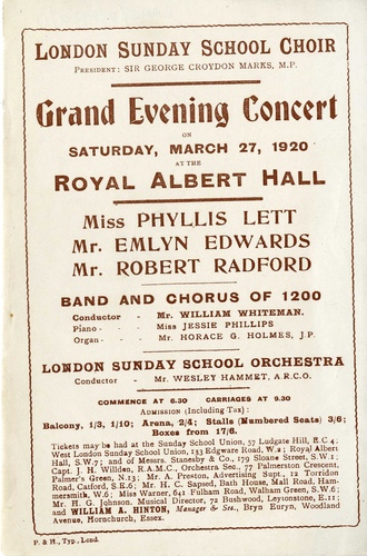 | Choirs | London Sunday School Choir |
