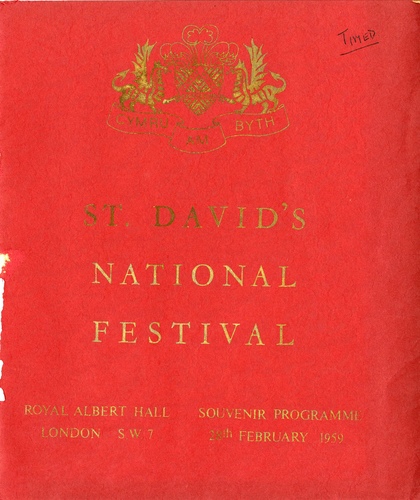 | Main Performers | City of Cardiff School of Music and Drama, Bwlch-Y-Groes (Pembrokeshire) Party, London Welsh Day School