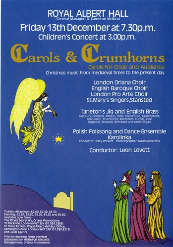 | Set List | 'O Come, All Ye Faithful', J F Wade, arr. Willcocks, 'Sellenger's Round', (Tarleton's Jig), 'O Little Town of Bethlehem', arr. Vaughan Williams, desc. Thomas Armstrong, 'Ding Dong! Merrily on High', harm. Charles Wood, 'Gloria, Gloria', Ivor Golby, 'The Holly and the Ivy', arr. Jacques, 'Chanson and Douce Dame Jolie' (Tarleton's Jig), 'Hear the Glad Tidings', 'Isiaj W Betlejem' (Karolinka), 'Lulajze Jezuniu' (Karolinka), 'Bracia Patrzcie Jeno' (Karolinka), 'De Virgin Mary Had a Baby Boy', arr. Sargent, 'The New Sa-hoo', Giles Farnaby (English Brass), 'Infant Holy, Infant Lowly', arr. Willcocks, 'The First Nowell', arr. Willcocks INTERVAL 'Once in Royal David's City', H J Gauntlett, harm. A H Mann, desc. organ Willcocks, 'Zither Carol', arr. Sargent, 'Tomorrow Shall Be My Dancing Day' (Tarleton's Jig), 'Finde Galliarde' (Tarleton's Jig), 'Deck the Hall', arr. Willcocks, 'Galliard Battaglia', Samuel Scheidt (English Brass), 'Bog Sie Rodzi' (Karolinka), 'Suita Lowicka' (Karolinka), 'Shepherds, Leave Your Flocks', 'It Came Upon the Midnight Clear', Adapt.Sullivan, 'Saltarello' (Tarleton's Jig), 'Sir Christemas' (Tarleton's Jig), 'The Little Drummer Boy', Simeone, Onerati and Davis, arr. Lovett, 'Hark! The Herald Angels Sing', Mendelssohn, arr. Willcocks, 'We Wish You a Merry Christmas', arr. Arthur Warrell |