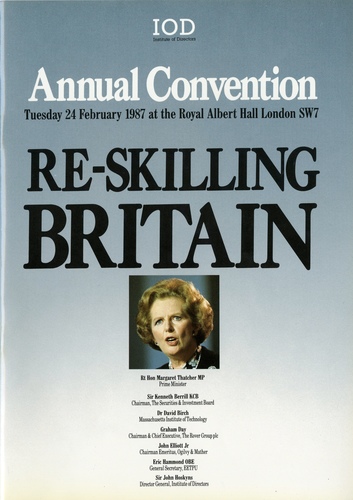 | Main Performers | The Prime Minister, The Rt. Hon. Margaret Thatcher, Sir Peter Walters, John Elliott - Chairman Emeritus, Ogilvy and Mather, Graham Day - Chairman and Chief Execuive, The Rover Group plc, Eric Hammond - General Secretary, EETPU, Sir Kenneth Berrill - Chairman, The Securities and Investment Board, Dr. David Birch - Massachusetts Institute of Technology (MIT), Sir John Hoskyns - Director General, Institute of Directors - speakers |
