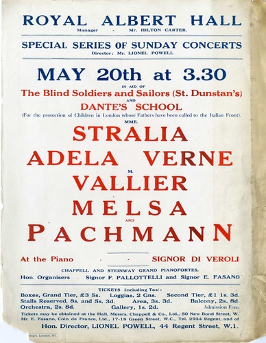 | Main Performers | Stralia, Vallier - vocals, Pachmann - pianoforte Adela Verne - organ, pianoforte, Melsa - violin |