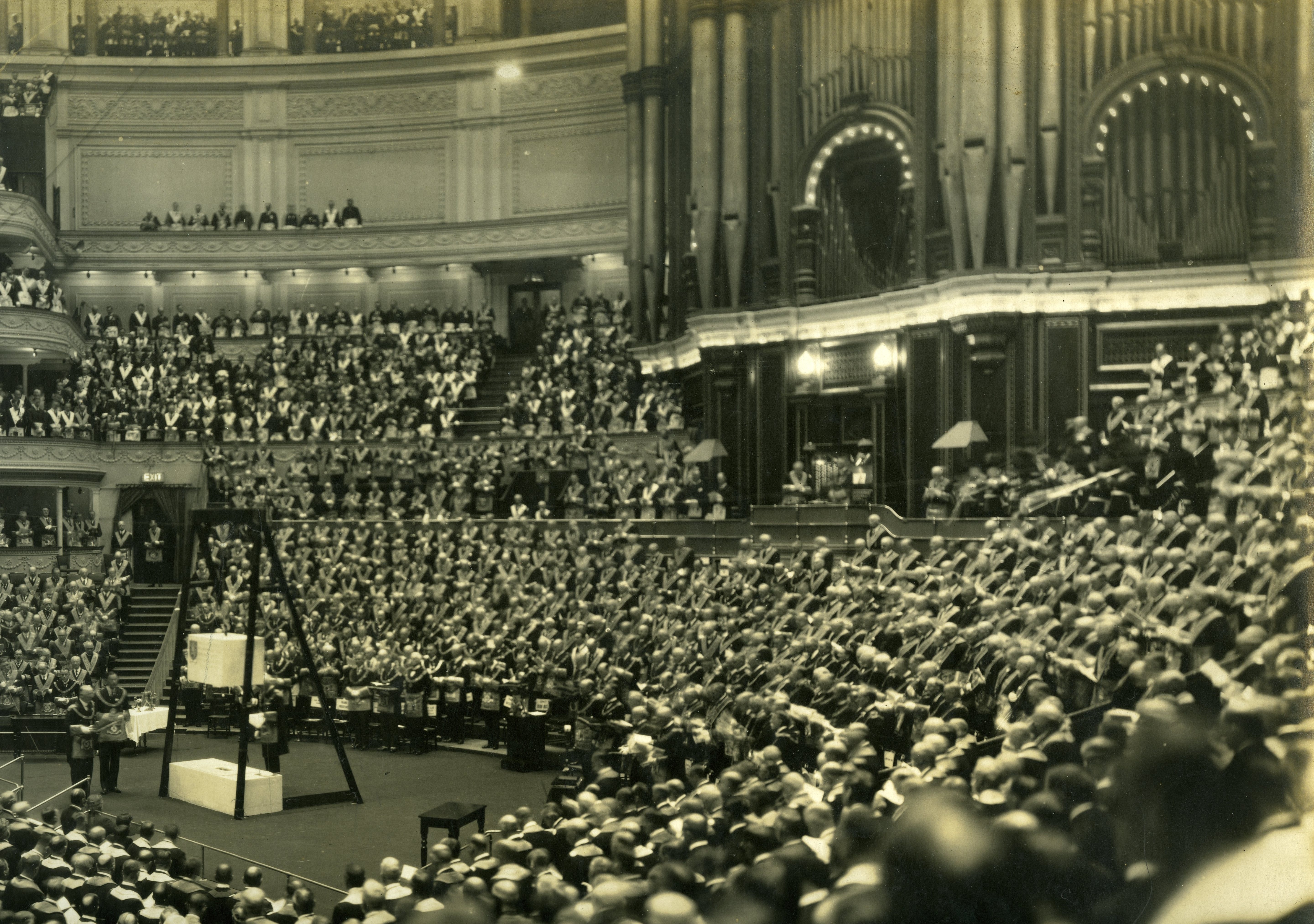 | Performance Notes | This was not the first of last time the Freemasons would use the Hall but in 1927 they held their only stone laying service at the Hall. Over 6,000 brethren watched a dummy foundation stone being laid in the centre of the auditorium by Field Marshal HRH the Duke of Connaught, in synchronisation via electrical relay with a real foundation stone being laid by their Grand Master at the new Freemason's Hall in Holborn.