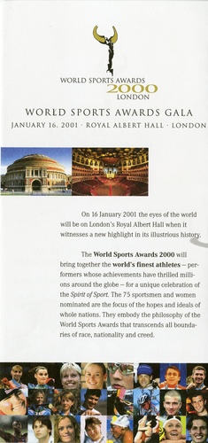| Performance Notes | International sports awards ceremony with attendance from some of the biggest names of the past, present and future in sport. A committee of journalists from 30 countries nominated five male and female achievers from each category from a shortlist of 260. The winners were selected by a jury chaired by International Olympic Committee (IOC) president Juan Antonio Samarancg and including Mushammad Ali, Bobby Charlton, Wayne Gretzky, Steffi Graf and Mark Spitz.
