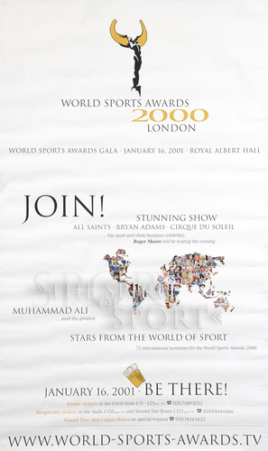 | Set List | Awards Ceremony: World Sportsman of the Century Award - Muhammad Ali, Football Award - Luis Figo (Portugal), Boxer Award - Lennox Lewis (GB), Watersports Award - Peter van den Hoogenband (Holland), I de Bruijn (Holland), Men's Track and Field Award - Michael Johnson (USA), Women's Track and Field Award - Marion Jones (USA), Ball Sports Award - Tiger Woods (USA, golf), Venus Williams (USA, tennis), Motor Award - Michael Schumacher (Germany), Combat Award - L Lewis (GB), Winter Award (Torvill and Dean) - H Maier (Austria, alpine skiing), R Goetschi (Austria, alpine skiing), Athletics - A Nemov (Russia, gymnastics), S Amanar (Romania, gymnastics), Extreme and Adventure (Buzz Aldrin) - M Martinez (France, mountain biking), P Pezzo (Italy, mountain biking), Honorary Award - Arnold Schwarzenegger